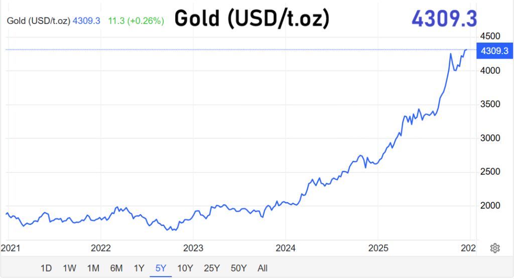 Der Goldmarkt zeigt sich weiterhin bemerkenswert robust. Das Edelmetall pendelt um die Marke von 4300 US-Dollar je Feinunze und bestätigt damit seine Rolle als sicherer Hafen in einem von geopolitischen Spannungen geprägten Umfeld. Mit einem Stand von 4307,69 US-Dollar nähert sich Gold seinem höchsten Niveau seit acht Wochen.