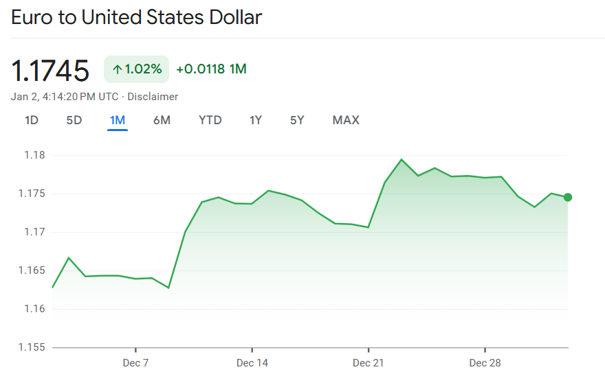Am Devisenmarkt zeigte sich der Euro zum Jahresbeginn schwächer. Die Europäische Zentralbank setzte den offiziellen Referenzkurs auf 1,1721 US-Dollar, nachdem dieser zuvor bei 1,1750 US-Dollar gelegen hatte. Entsprechend verteuerte sich der Dollar auf 0,8531 Euro.