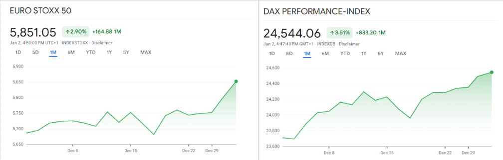 Auch an der Frankfurter Börse kam es im Handelsverlauf zu leichten Anpassungen. Der Dax notierte kurz nach der Mittagszeit noch 0,3 Prozent im Plus bei 24.572 Punkten, nachdem er zuvor höhere Gewinne verbucht hatte. Der europäische Leitindex EuroStoxx 50 konnte seine Aufwärtsbewegung besser behaupten und stieg um 0,6 Prozent auf 5.828 Punkte.