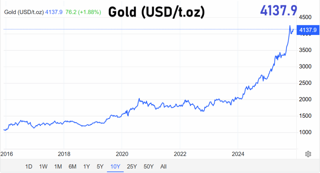 Der Goldmarkt präsentiert sich zum Wochenbeginn robust. Die Feinunze notiert bei 4.142 US-Dollar und bewegt sich damit weiterhin in einer Phase stabiler Nachfrage. Marktbeobachter führen die anhaltende Stärke des Edelmetalls auf mehrere Faktoren zurück: geopolitische Unsicherheiten, schwächere Konjunktursignale aus Teilen Europas sowie die steigende Wahrscheinlichkeit, dass die US-Notenbank bereits im Dezember eine weitere Zinssenkung vornehmen könnte.