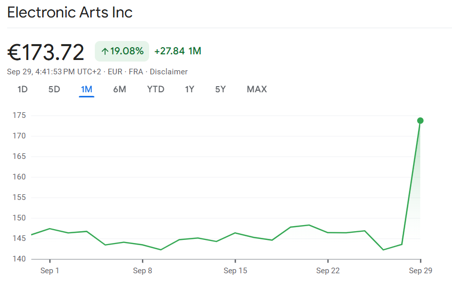 Die Aktionäre von Electronic Arts sollen 210 US-Dollar je Aktie in bar erhalten. Das entspricht einer Prämie von 25 Prozent auf den Schlusskurs vom Donnerstag vor Bekanntwerden der ersten Medienberichte. Bereits am Freitag war der Kurs der EA-Aktie um rund 15 Prozent gestiegen, nachdem erste Informationen über den möglichen Deal durchgesickert waren. Damit wird einer der größten Übernahmeabschlüsse in der Geschichte der Videospielindustrie besiegelt.