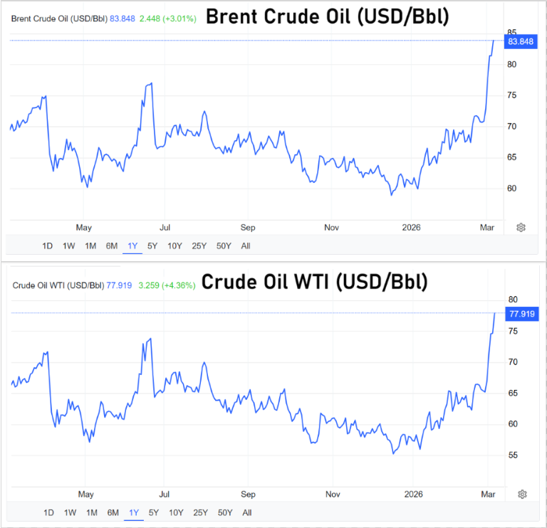 Höhere Ölpreise können Transportkosten erhöhen, Produktionskosten in der Industrie steigen lassen und letztlich auch Verbraucherpreise beeinflussen. In der Vergangenheit führten ähnliche geopolitische Krisen häufig zu Inflationsdruck und wirtschaftlicher Unsicherheit.