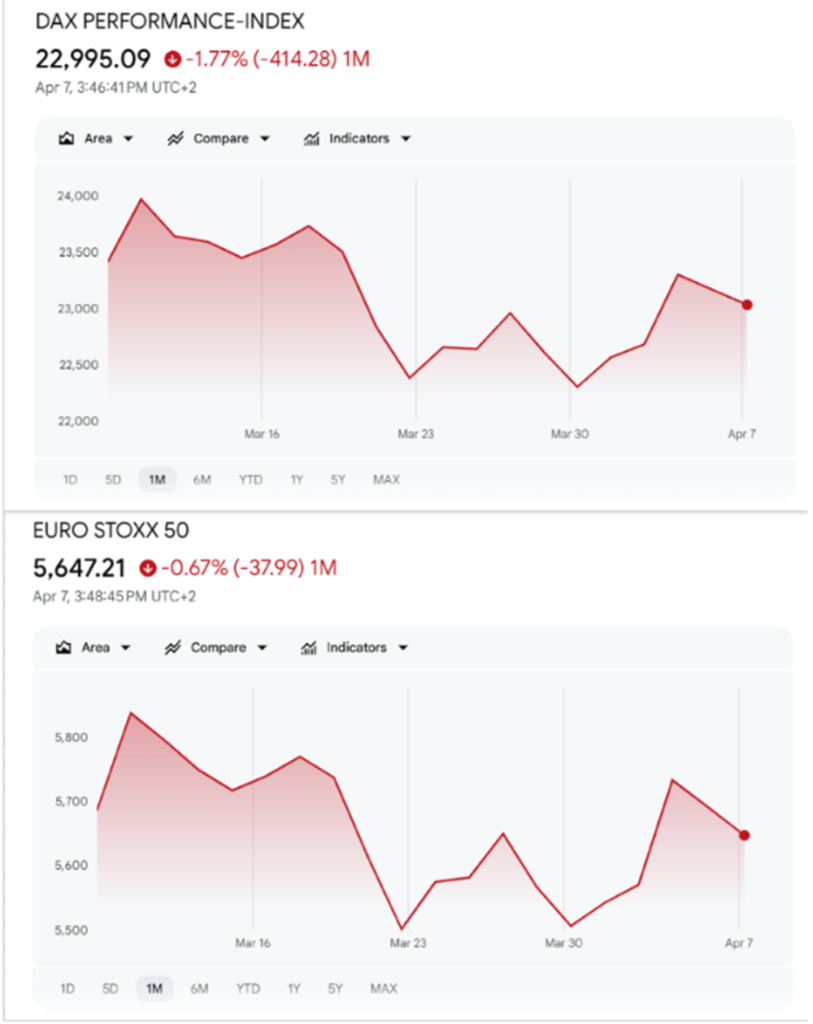 Die Nervosität beschränkt sich nicht auf die USA. Auch in Frankfurt geriet der Markt wieder unter Druck. Der Dax sackte um 0,8 Prozent auf 22.969 Punkte ab und fiel damit erneut unter die Marke von 23.000 Punkten. Der EuroStoxx50 verlor 0,5 Prozent und notierte bei 5.663 Punkten.