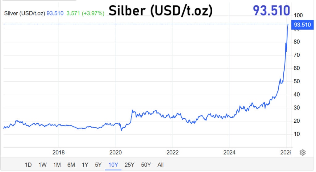 Ein Marktteilnehmer erklärt: „Die Unsicherheit nimmt weiter zu.“ In einem solchen Umfeld gelten Gold und Silber traditionell als Absicherung gegen politische Risiken, Währungsabwertung und Vertrauensverluste in staatliche Institutionen.